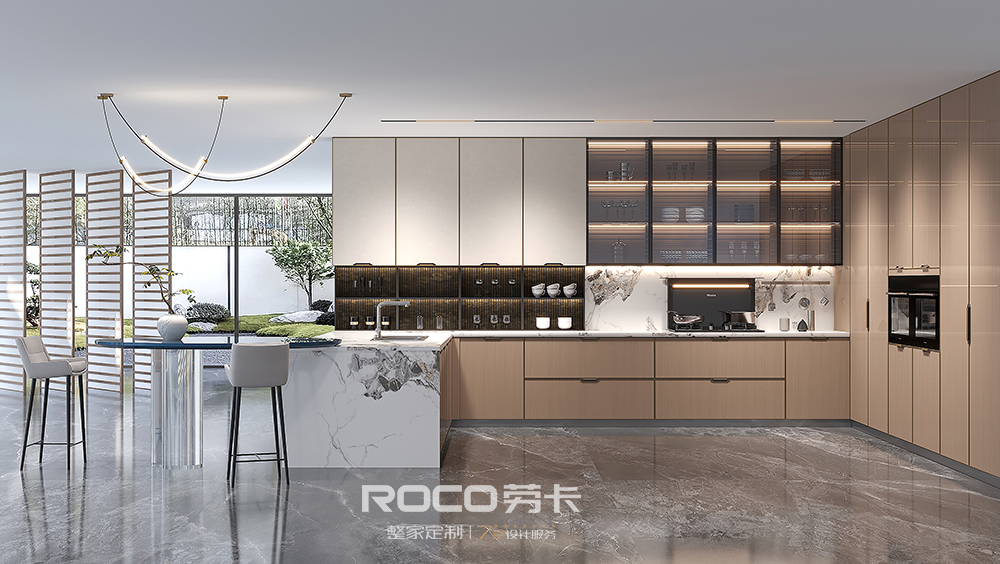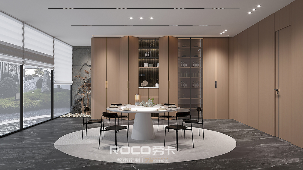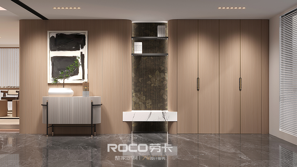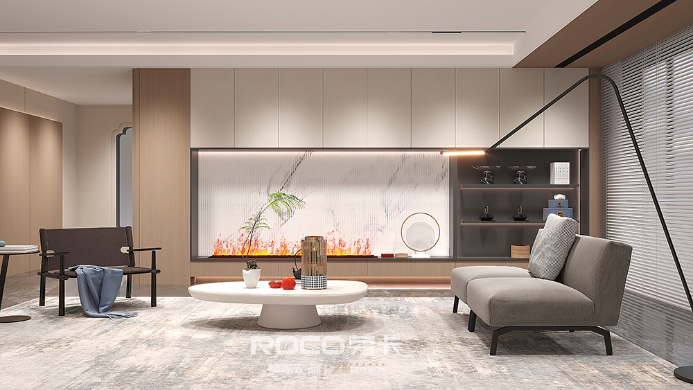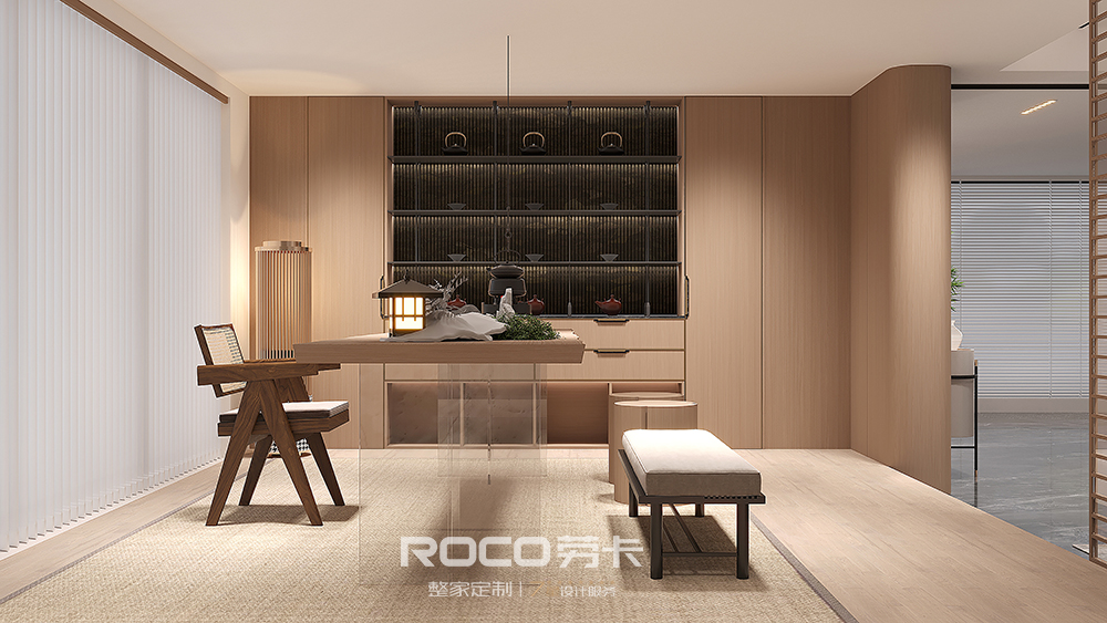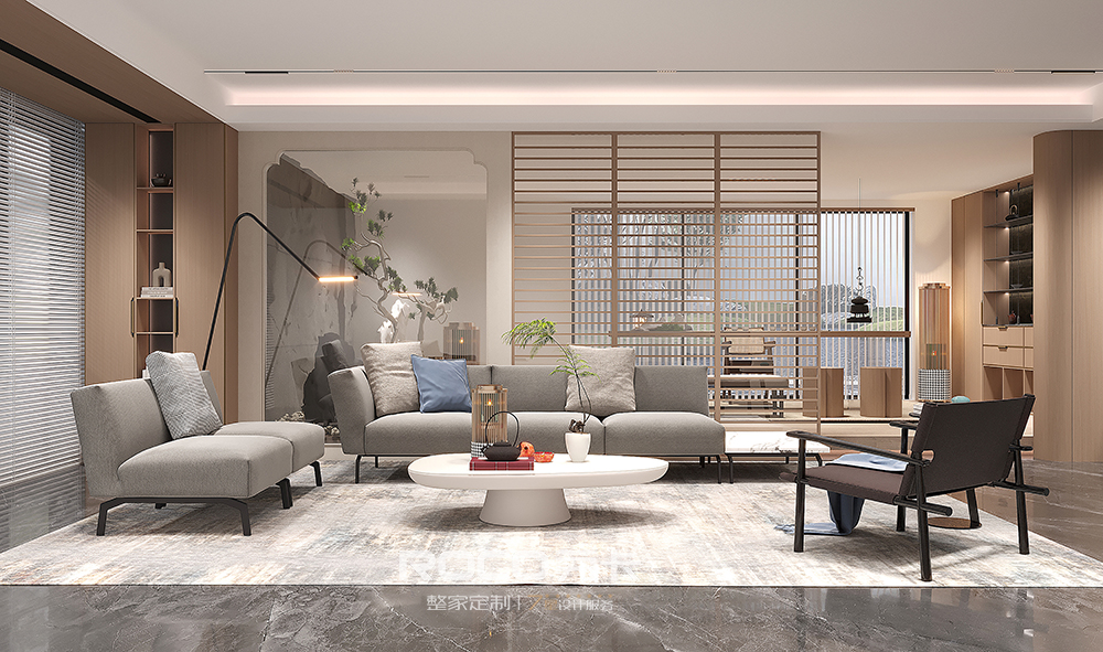 以中性偏灰的自然木纹色为主调,k8凯发天生赢家一触即发融入海棠花元素,使用现代设计手法,摒除传统中式的深沉、厚重之感,以新时代审美打造简洁明快的新中式风空间美感。